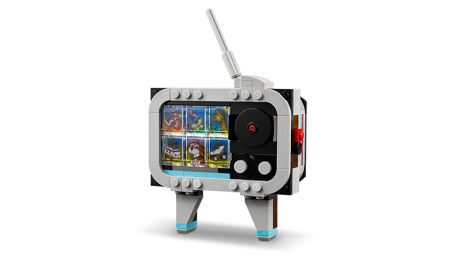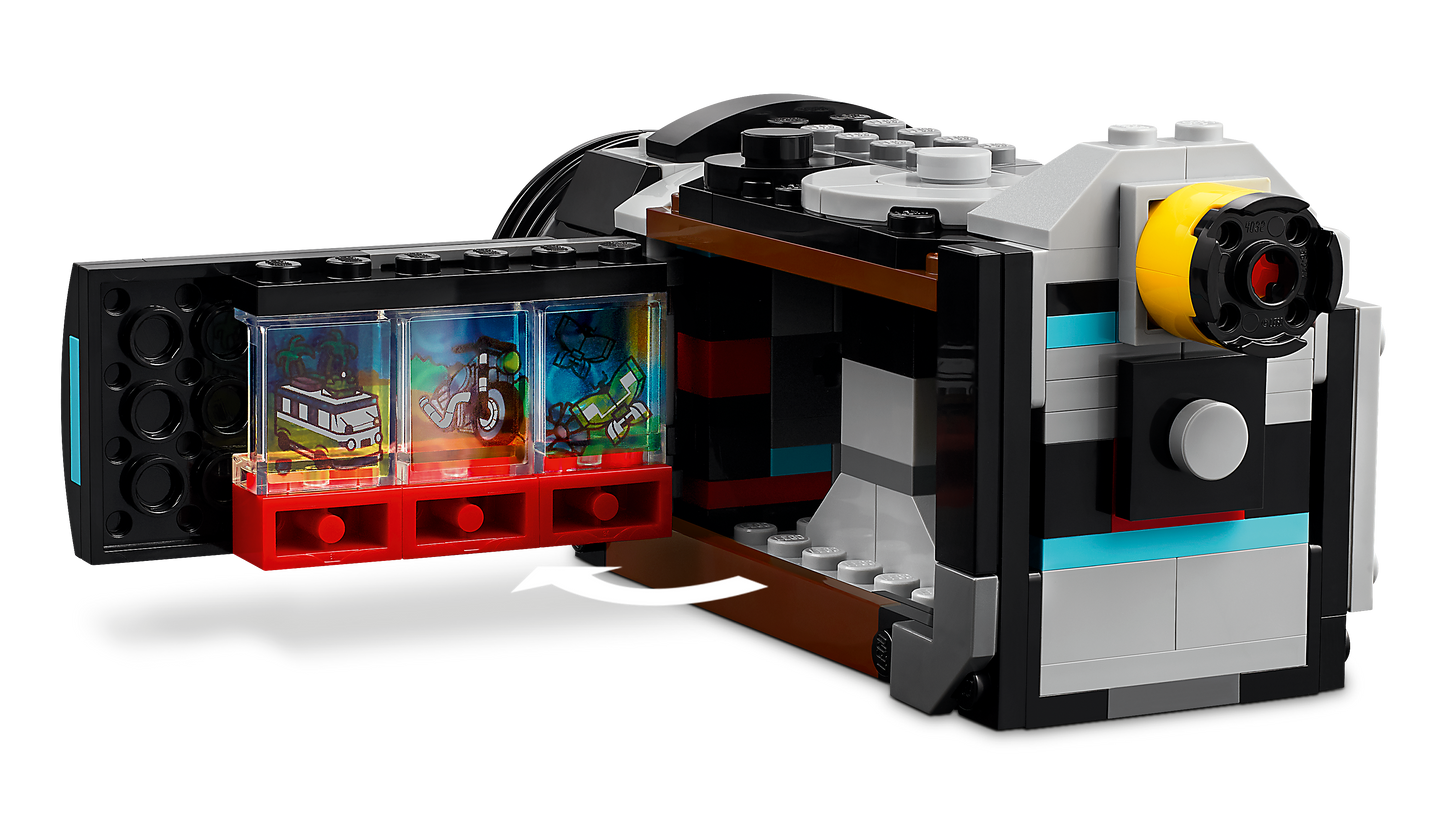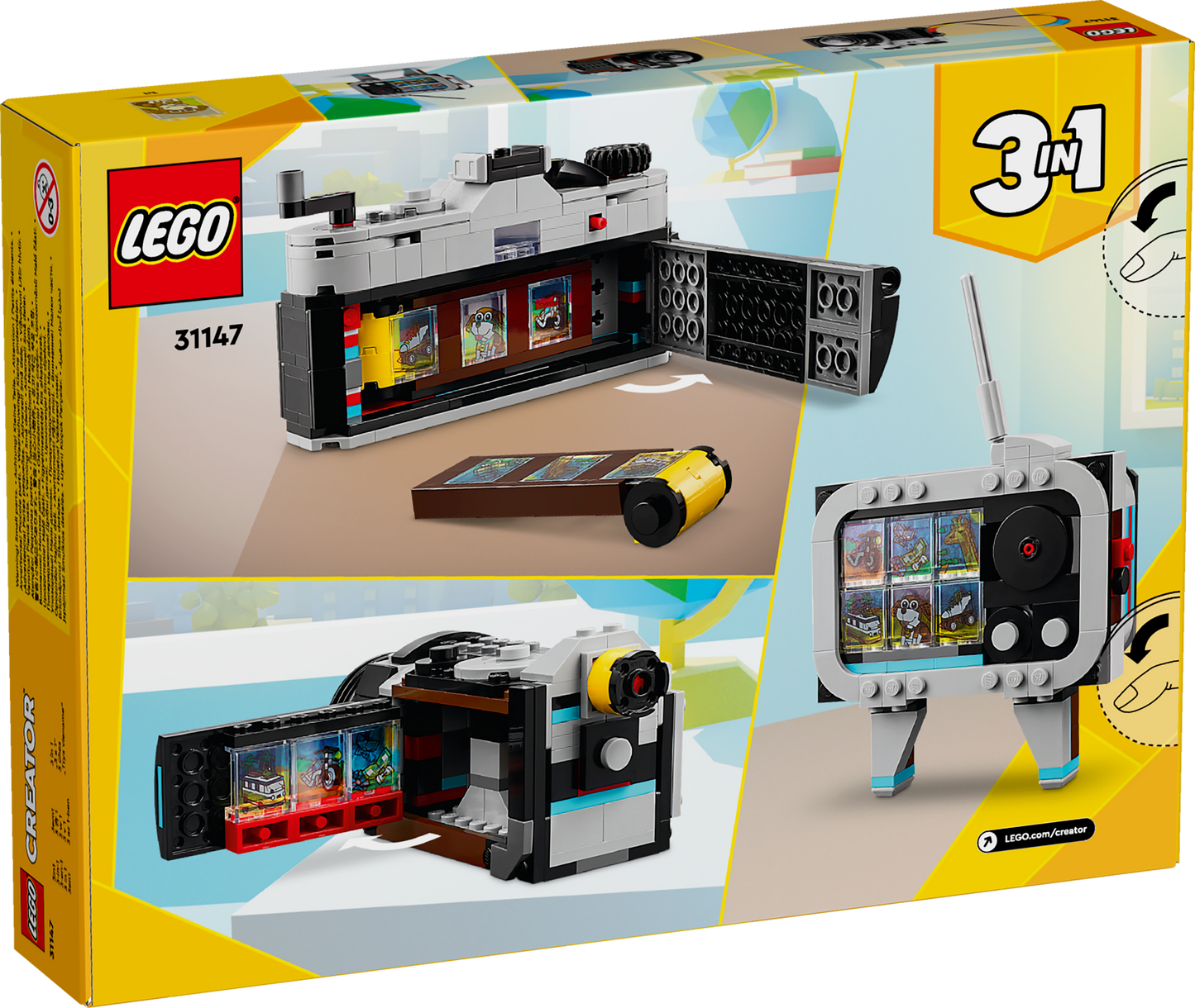 Die LEGO Creator Retro Kamera (31147) ist ein 3in1-Set, mit dem Jungen und Mädchen ab 8 Jahren 3 kreative Modelle bauen können. Dein Kind kann zunächst eine Spielzeug-Kamera bauen und diese dann entweder in eine Retro-Videokamera oder in einen Retro-Fernseher mit Zimmerantenne umbauen. Dieses LEGO Creator 3in1 Retro-Spielzeug bietet Kindern 3 verschiedene Bau- und Spielerlebnisse mit denselben Bausteinen. Die LEGO Kamera hat ein bewegliches Objektiv, Bedienknöpfe an der Oberseite, eine aufklappbare Rückwand zum Einlegen eines Films aus LEGO Steinen sowie einen Stofftrageriemen. 6 Aufkleber stellen die Fotos deines Kindes dar. Alle 3 Modelle eignen sich wunderbar als Retro-Schreibtisch-Deko. Unsere breite Auswahl an LEGO 3in1 Spielzeug für Mädchen und Jungen spricht Kinder mit unterschiedlichsten Interessen an und umfasst unter anderem rasante Fahrzeuge, faszinierende Tiere und detailreiche Stadtkulissen. Die LEGO Creator Retro Kamera ist ein kreatives Fotografie-Geschenk für kleine Fotografen, die eine Leidenschaft für Fotos und Videos haben. Die Spielzeugkamera ist 7 cm hoch. Enthält 261 Teile.