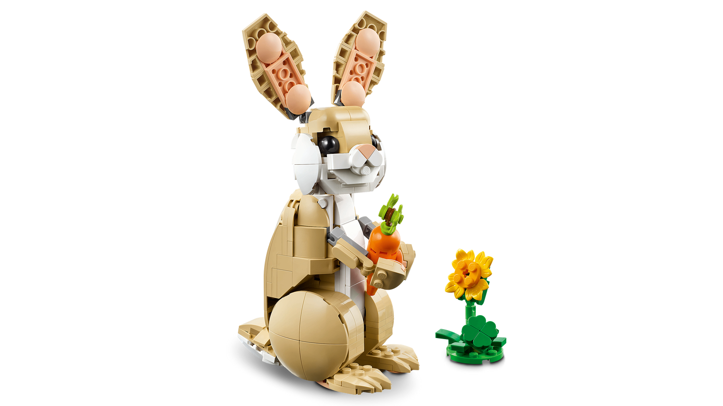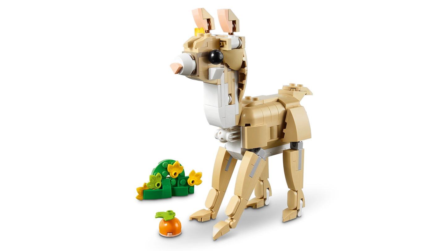 Schick Mädchen und Jungen ab 8 Jahren, die Tiere lieben, mit dem LEGO Creator Häschen (31162) aus diesem 3-in-1 Bauset in lustige Abenteuer. Das tierische Spielset beinhaltet ein Spielzeug Häschen, das Kopf, Ohren, Vorderläufe und Hinterläufe bewegen kann. Die Figur kann auf 2 oder 4 Beinen stehen. Zum Bauspielzeug gehören auch eine Sonnenblume und eine Karotte. Mädchen und Jungen können 3 verschiedene Tiere mit den Steinen aus diesem LEGO Bauset bauen: ein bewegliches Häschen mit Sonnenblume und Karotte, eine bewegliche Lama Figur mit einem grünen Grasbüschel und eine Robbe mit einer kleinen Eisscholle und einem Fisch. Alle 3 Kulissen lassen Kinder fantasievoll spielen. Die Modelle zum Spielen und Ausstellen sind ein tolles Geschenk. LEGO Creator 3-in-1 Sets bieten jeweils 3 Bauoptionen und wecken die Fantasie der Kinder, die die Modelle mit großer Begeisterung bauen und immer wieder umbauen. Und die LEGO Builder App bietet euch ein tolles gemeinsames Bauerlebnis. Wichtiger Hinweis: Die Modelle können nicht gleichzeitig gebaut werden.